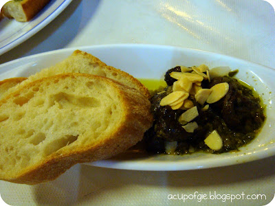 A simple dinner to celebrate his entreprenuer grant being approved by Spring Singapore. The entrees such as Onion Soup and Escargot with Olive Oil are pretty tasty. But what puzzles me was the Chicken Liver Pate. The serving was as large as a luncheon meat. Too big for a pate, no? The bread wasn't enough to go around and soon, we find ourselves eating the pate on its own. The taste of the pate was slightly overwhelming when on its own. Bleh.